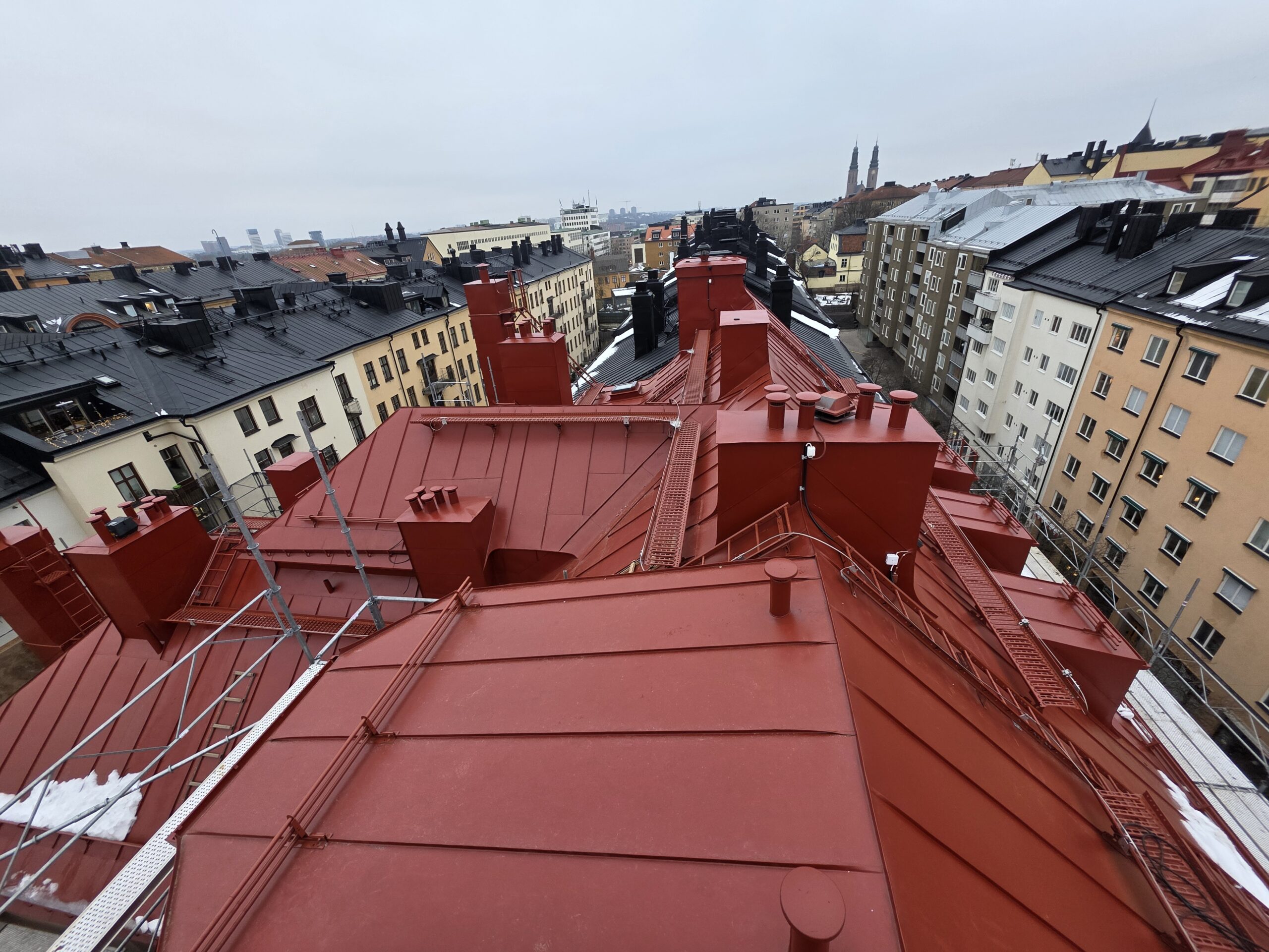 Brf Tapeten 4 har ett uttjänt tak där vi assisterat i upphandling, projektledning samt besiktning av nytt tak.